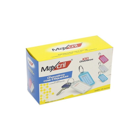 CHAVEIRO PLÁSTICO COLORIDO C/100 IDENTIFICADORES MAXCRIL WALEU