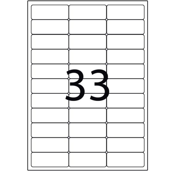 Tamanho da etiqueta: 25,4mm x 63,5mm / Etiquetas por folha: 33 / Embalagem com 100 folhas