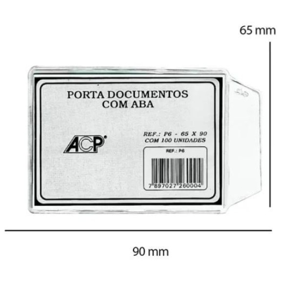 PORTA DOCUMENTOS 65X90MM P-6 C/100 UNIDADES ACP