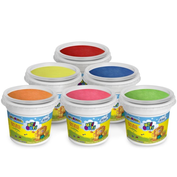Contém 6 Potes com as Cores: Laranja, Rosa, Verde, Vermelho, Amarelo e Azul