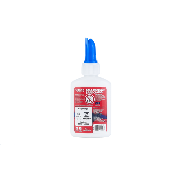 Cola líquida 40g Futuro / Lavável / Não tóxica / Ideal para trabalhos manuais de colagem / Produto Certificado INMETRO (Artigo Escolar/Segurança) – Registro 007011/2022.