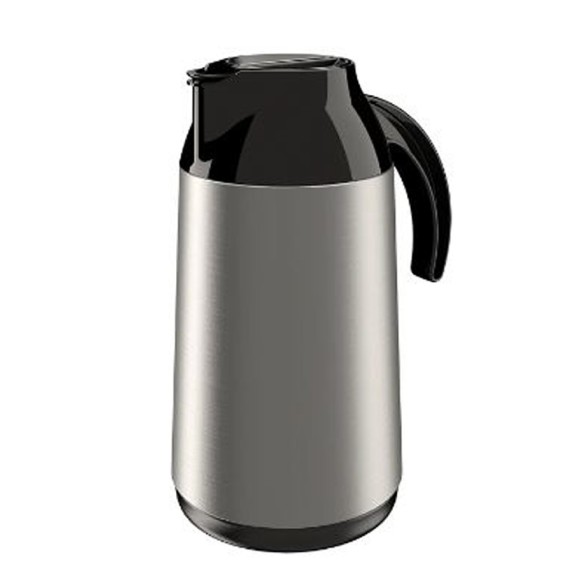 Garrafa Térmica Rolha Berlim / Cor do Corpo: Inox / Cor da Tampa: Preto / Capacidade 1.0 Litro / Dimensões: 130mm x 174mm x 243 mm / Material: Ampola de vidro, inox e peças em plástico injetado / 8h de Calor / 12h de Frio