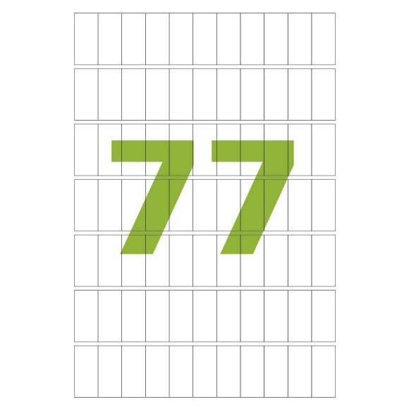 Tamanho da etiqueta: 12mm x 26mm / Etiquetas por folha: 77 / Embalagem com 12 folhas / Formato A5