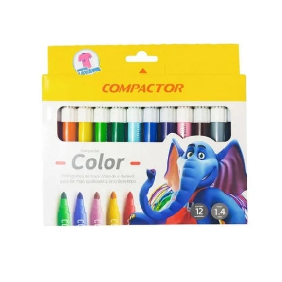 CANETINHAS HIDROGRÁFICAS JUMBO COM 12 CORES COMPACTOR