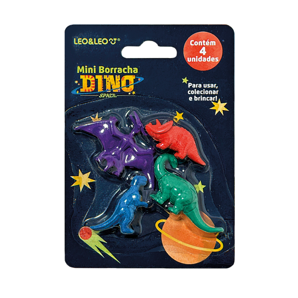 BOARRACHA MINI DINO SPACE C/4 UNIDADES LEO&LEO JOCAR