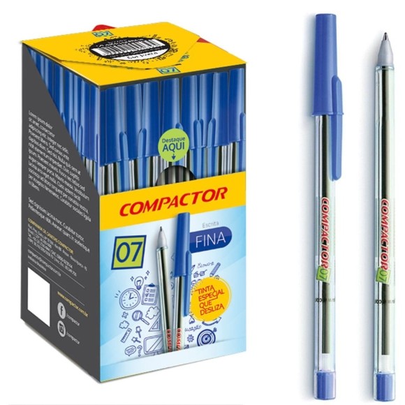 CANETA ESFEROGRÁFICA 0.7 AZUL CAIXA C/50 COMPACTOR